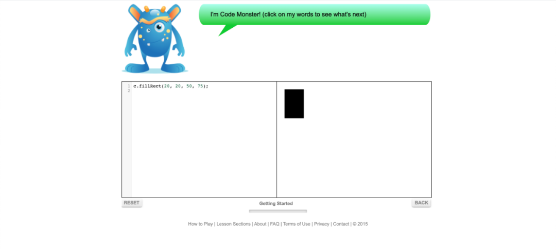 Code Monster的形式非常非常非常简单,其结构只有两个框:一个框是写代码的地方,另一个框会显示结果。