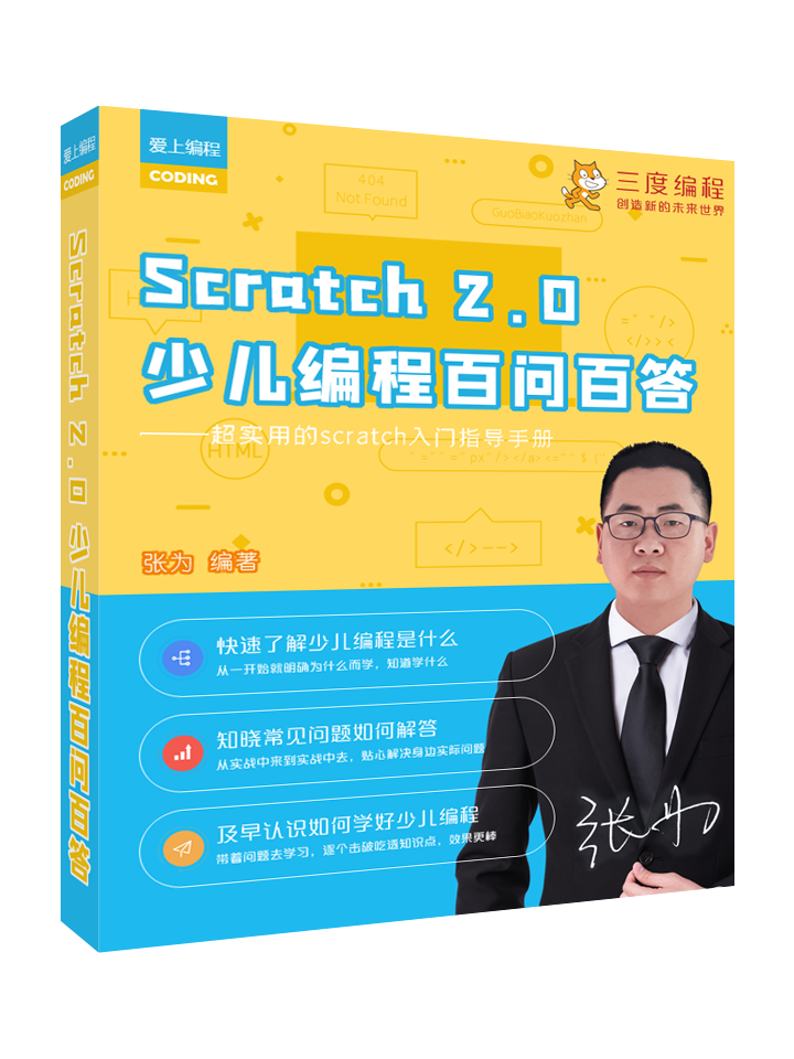 少儿编程张为:忆述《Sscratch 2.0 少儿编程百问百答》创作历程这份《Scratch2.0 少儿编程百问百答》是我教学经历的精华提炼,针对众多家长和孩子的认识误区、困惑之处都进行了仔细的讲解,相信阅读完本书之后,你至少会得到几方面的提升:
