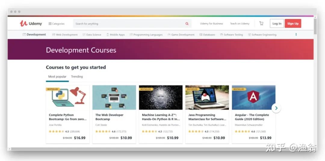 Udemy是一个领先的在线教育平台,提供大多数编程语言课程,用户群体也相当大,课程分为收费和免费,这是由讲师决定,价格从10美元到几百美元不等,主要具有以下特点: