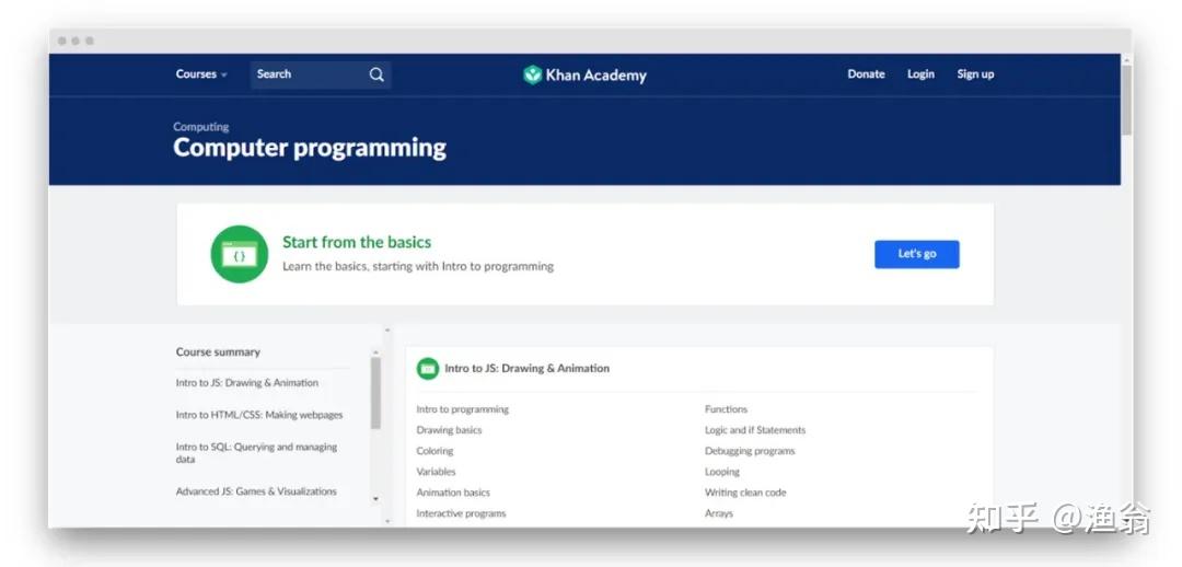 尽管Khan Academy没有Java或Python教程,但该平台是理解计算机科学基本概念的一个很好的起点,完成这些课程后,你将会了解数据结构相关的知识,掌握oOP概念,并获得“程序员思维”,具有以下特点: