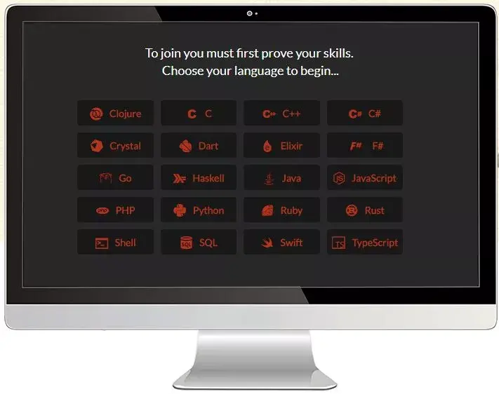 在战斗中进行学习。和其他人一起在真实的编程挑战中提升技巧,支持 JavaScript、Python、C#、Java、Python 等语言(支持的语言见下图)。