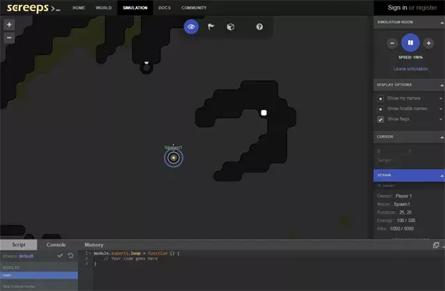 这个游戏是一个开放的策略游戏,游戏中你控制的单位被称为 “creeps”,它可以帮你获得资源、建立自己的领地等等。作为一个多人在线游戏,游戏中你的 creeps 会被其他玩家的 creeps 包围。