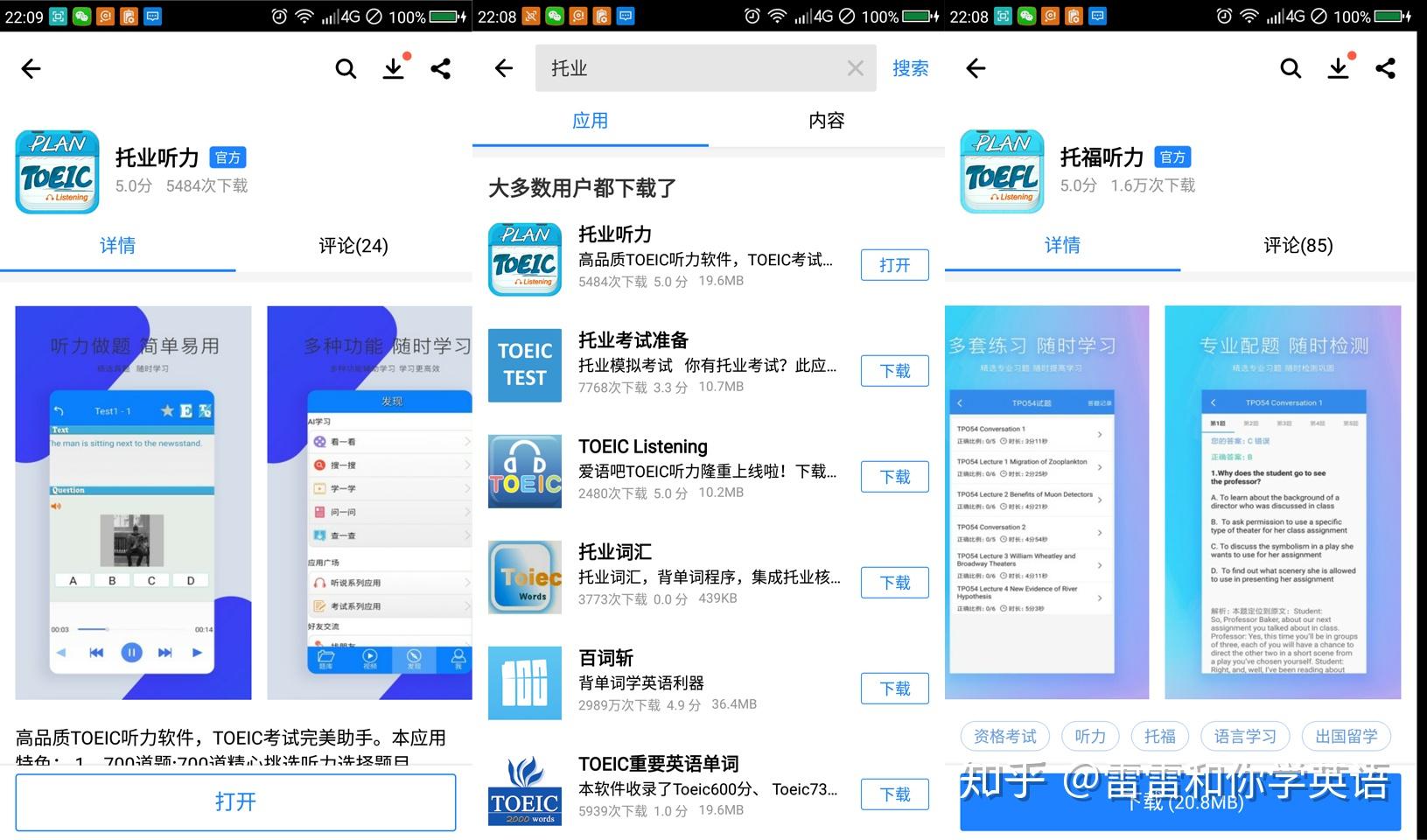 5.如果你想考托业,雅思,托福,很多英语app。例如在应用宝搜托业就可以很轻松的学习啦