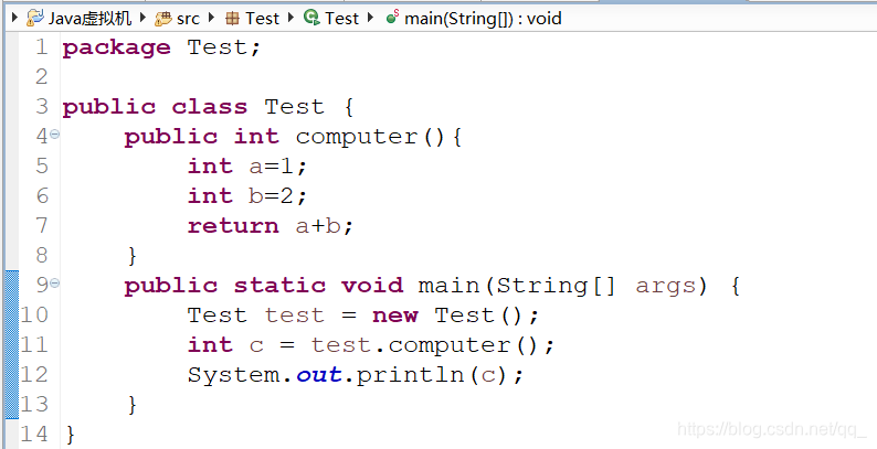 在执行main方法时,会跳出去转到computer方法中,在执行完computer方法后,它会再回到main方法中,但是,它回到哪了呢?
