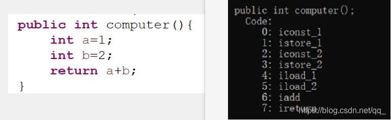 iload_1:从局部变量①中转载int类型值 即a的值1
