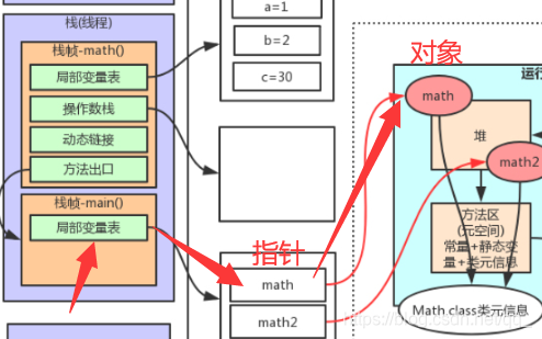 其实,局部变量表中存放的是堆中对象对应的内存地址,即可以理解为它存放一个指向堆中对象的指针。