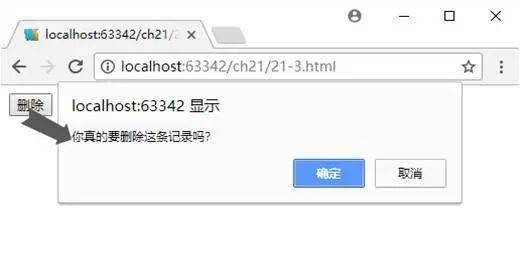 在上述实例的代码中,onclick表示按钮的单击事件,confirm方法用于显示一个带有指定消息和 ok 及取消按钮的对话框,是Java代码中常用于询问类的方法。