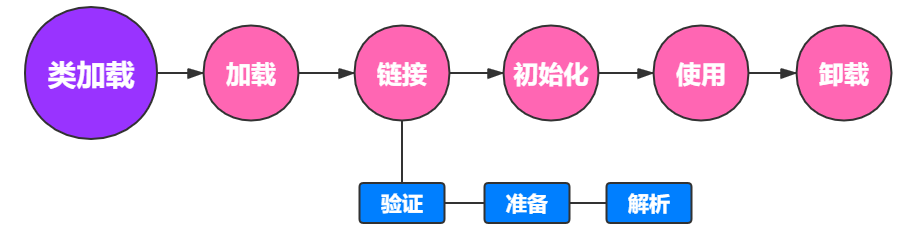 通过一个类的全限定名来获取定义此类的二进制字节流。将这个二进制字节流所代表的静态存储结构导入为方法区的运行时数据结构。在java堆中生成一个java.lang.Class对象,来代表的这个类,作为方法区这些数据的入口。1.2.1.2 链接