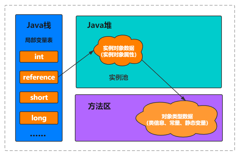 假设我们创建了这样一个学生类,Student student 就代表作为一个本地引用,被存储在了 JVM 虚拟机栈的局部变量表中,此处代表一个 reference 类型的数据,而 new Student 作为实例数据存储在了堆中。还保存了对象类型数据(类信息,常量,静态变量)