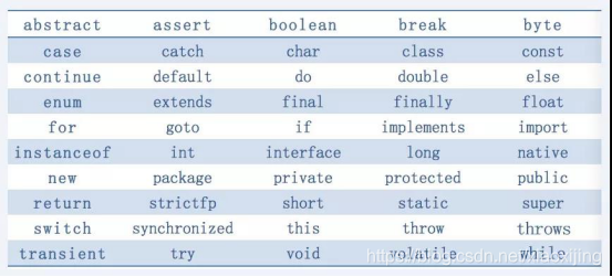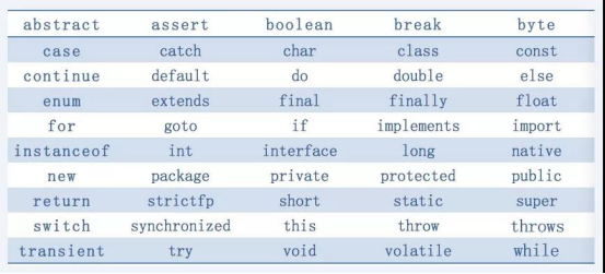 我们先来看看使用量最多的Java语言。Java的英文单词、学名关键词或者保留字,也就几十个。