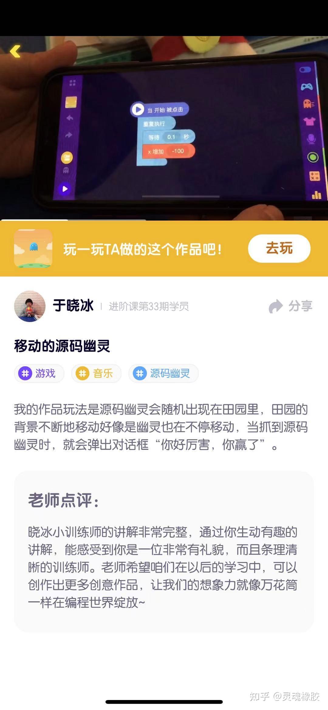 这个之所以放到最后来说,其实我个人觉得这个还是有点小贵,但是我媳妇那时候非要给孩子报名,大概不到3000块钱一年,每周都有编程课学,是在线课程(合一节课得60块钱),在APP里让孩子一步步的学习如何通过编程制作手机小游戏等。最初也是免费的试听课,孩子上了试听课后,我猜啊主要是因为可以自己做一些手机上的小游戏,觉得挺好玩,自己也说要学,就报名了,其实现在也就价格小贵点,不过也在接受范围内,不过这个编程学习单纯是用手机/iPad编程,容易让孩子对手机/平板产生依赖,需要家长好好的控制时间,要不对孩子的视力非常不好。