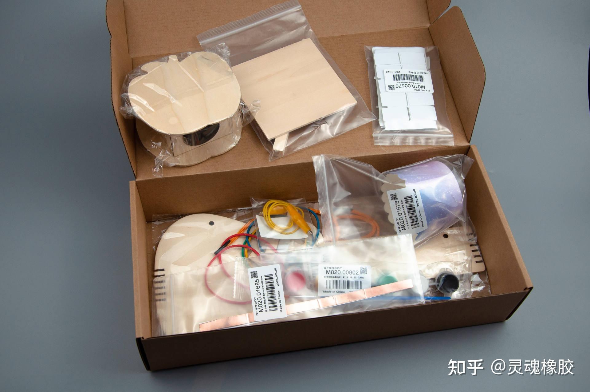 整个造物粒子的基础体验包的核心配件都在这里,每个都是单独的包装,做工不错,每个都有编号,条码,可编程芯片还有说明书!