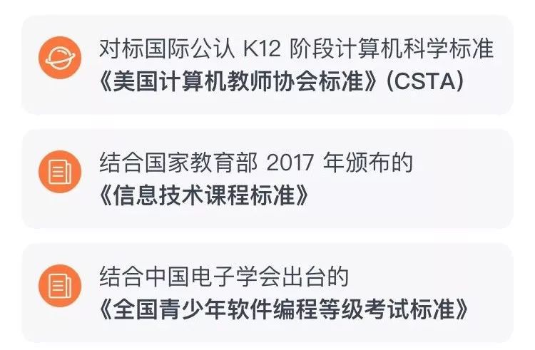 核桃的教研设计不仅参考国际化CSTA标准设计,还充分参考国家和电子社会出台的各项标准,专门针对6-12岁中国小朋友设计。