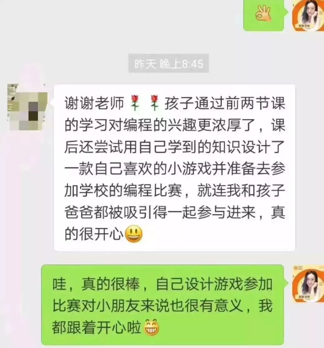 更惊喜的是以往假期孩子沉迷游戏,现在可以自己当小创客津津有味做开发,自己创造游戏。让广大母亲十分欣慰。