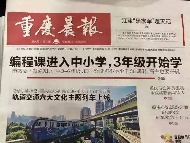 前不久,重庆市教委就发通知,要求从小学3年级开始必须学编程。