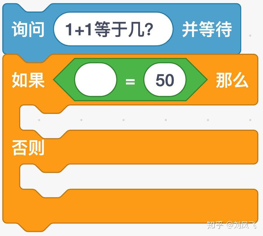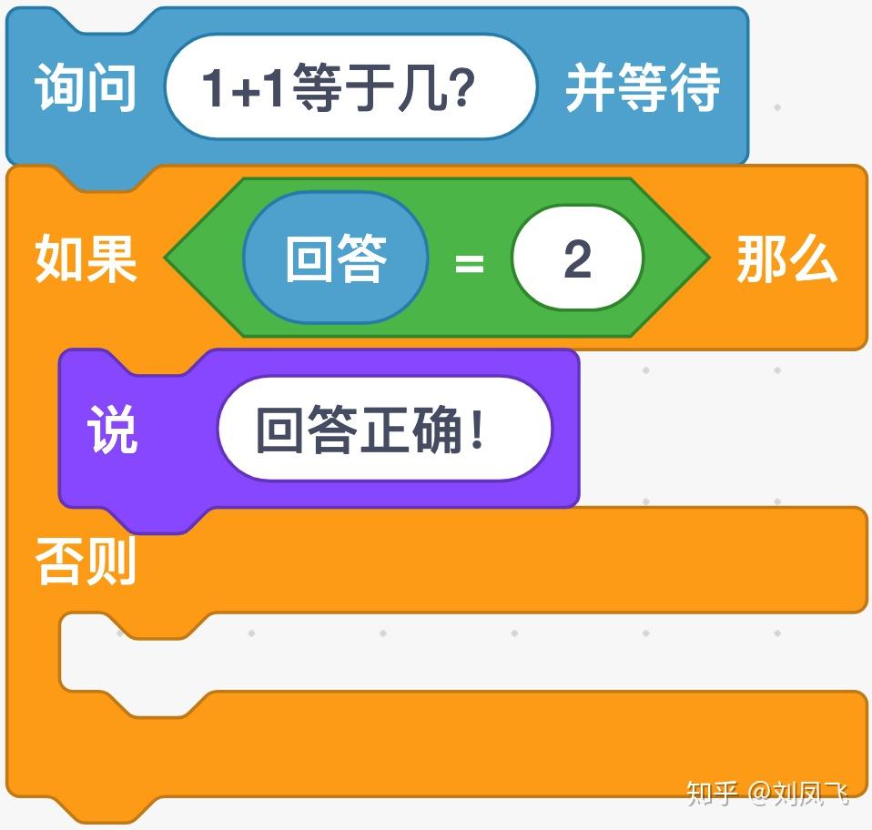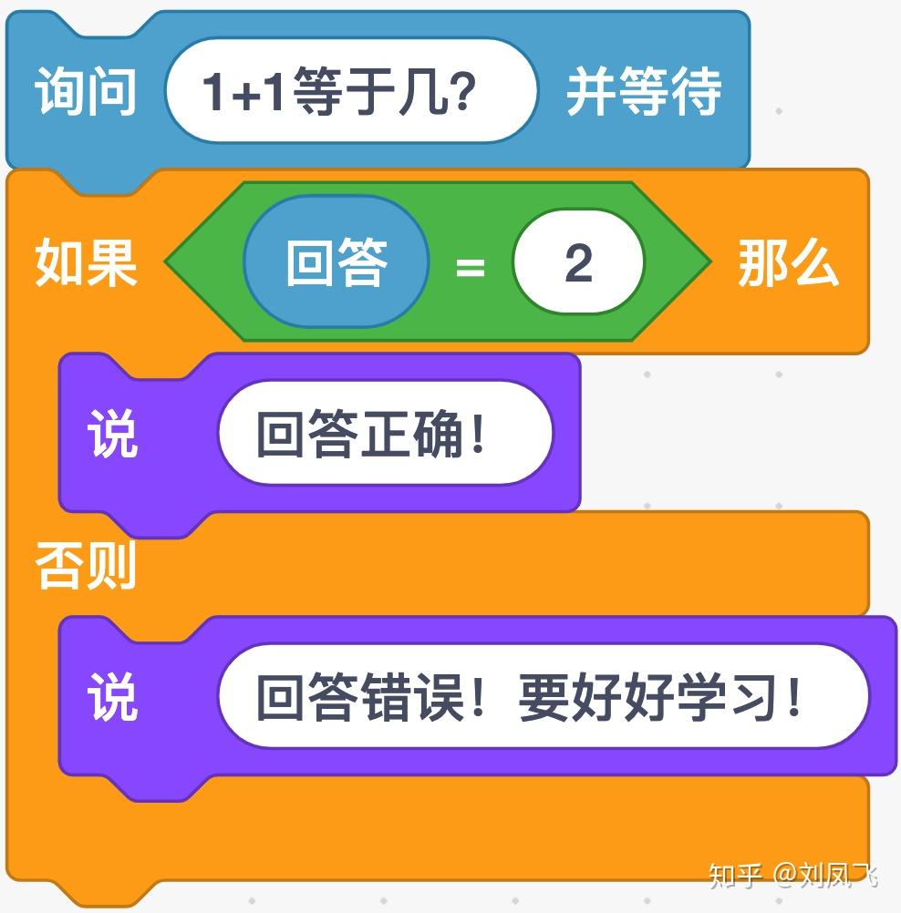 (2)将积木块中的英文修改成“1+1等于几?”,修改后为,然后将积木块拖动到脚本区。