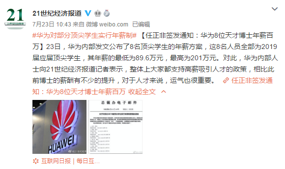 华为总裁任正非签发通知:华为8位天才博士,已经获得了百万年薪!