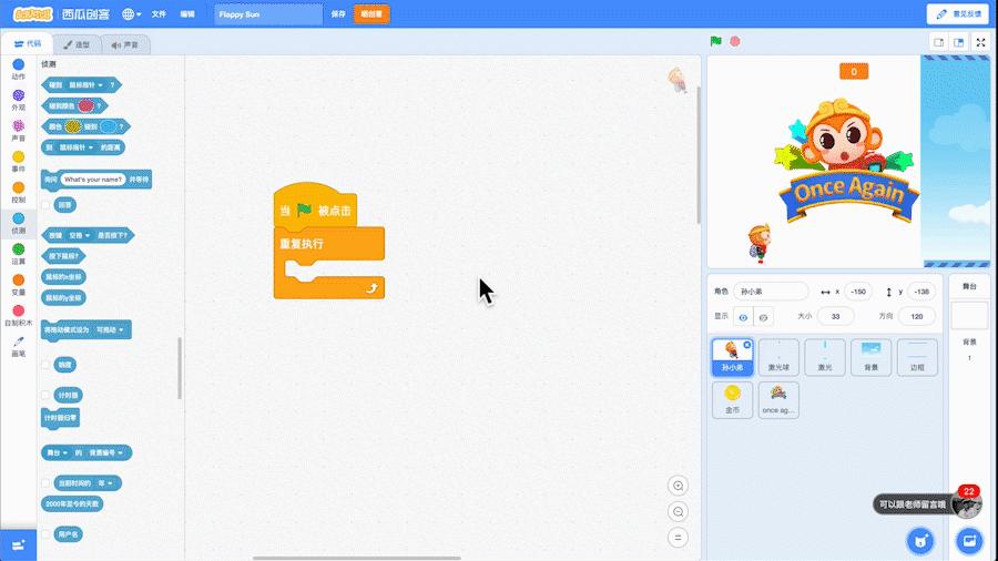 对一年级的孩子来说,这样简单拖拽操作起来很容易。里面会涉及一些「如果 那么 否则」这样的逻辑关系,能够很好锻炼到逻辑思维。