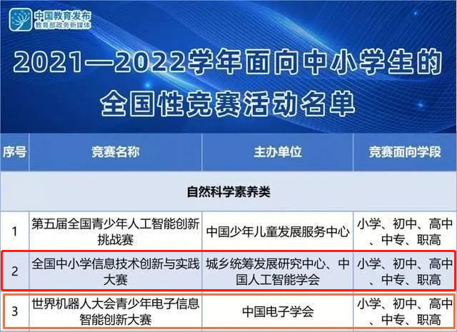 为了进一步规范中小学赛事,提升比赛含金量,教育部每年都会认证部分优秀竞赛组成“白名单”。“白名单”赛事具有成熟的全方位评估标准,比一般学校的素质教育评估更具说服力。