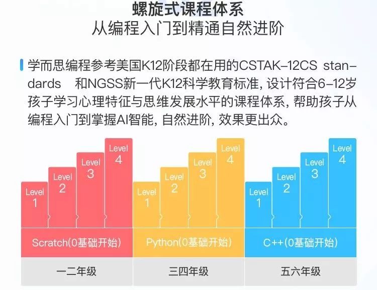 学而思网校强调因材施教,开设众多适合不同年级孩子的班型。符合儿童心理发展规律,能理解会思考,将原本枯燥的编程学习变得轻松易懂。