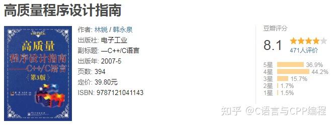 《高质量程序设计指南》,墙裂推荐,这本书看得比较过瘾,书里面有一些编程规范的东西,对于写程序的人来说,还是不错的,可以培养好的编码习惯,加深了一些知识的巩固。比较实用,也适合面试前看看。