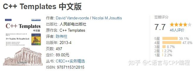 《C++ Templates中文版》,深入了解现代 c++ 模板的实用书籍。本书不仅是对 C++ 模板的权威解释,而且本书还深入地介绍了其他一般的 C++ 思想。