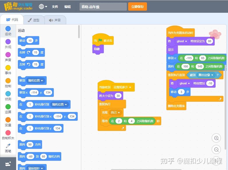 ① 图形化编程降低了编程学习的门槛对于低年级的孩子来说,图形化编程跳过了高级语言中那些繁难的概念和语法,用图形化的表现和拖拽的交互来完成编程的核心逻辑和成果交付。通过拖拽积木块创建代码,而不是手动编写基于文本的代码,就降低了打字输入的要求,能够有效提高他们编程输入的速度;与此同时,也能减少语法出错的概率,让他们将注意力集中在指令的组合方式、程序的执行顺序和逻辑结构等方面。图形化编程让编程学习的过程不再枯燥,并更及时地获得结果反馈,非常适合低年龄段孩子的心智水平和认知能力,有助于孩子从小培养对编程的兴趣。