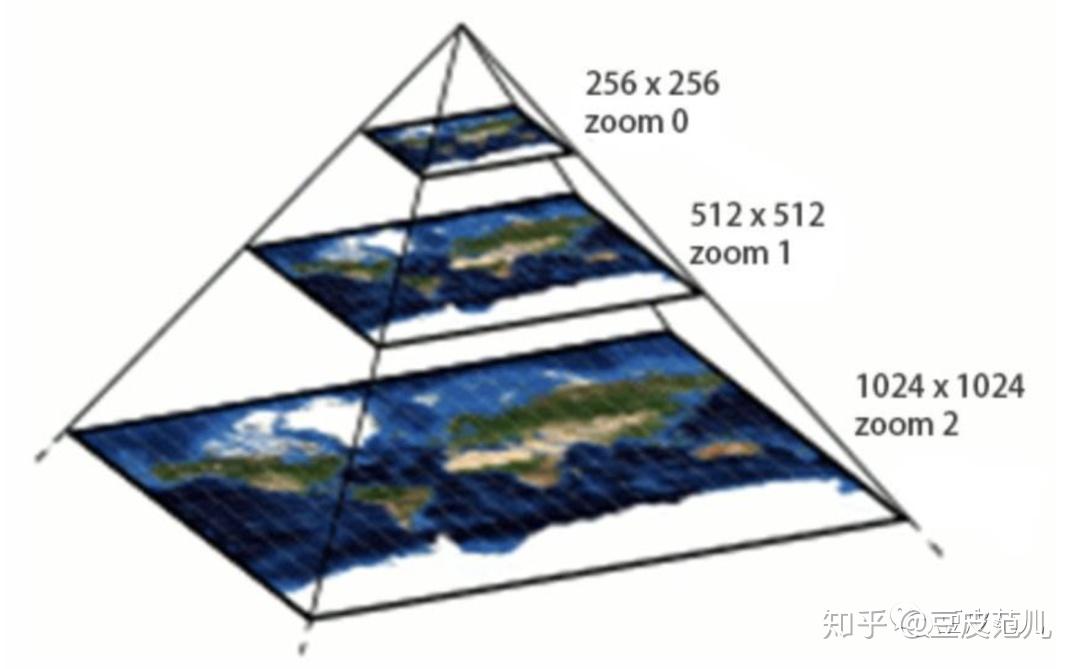 其次 数据通常是瓦片金字塔模型,是一种多分辨率层次模型,从瓦片金字塔的底层到顶层,分辨率越来越低,但表示的地理范围不变。简单来说就是平时我们看地图 放大后 看到的更详细,这么做可以得到更好的性能和观看体验。