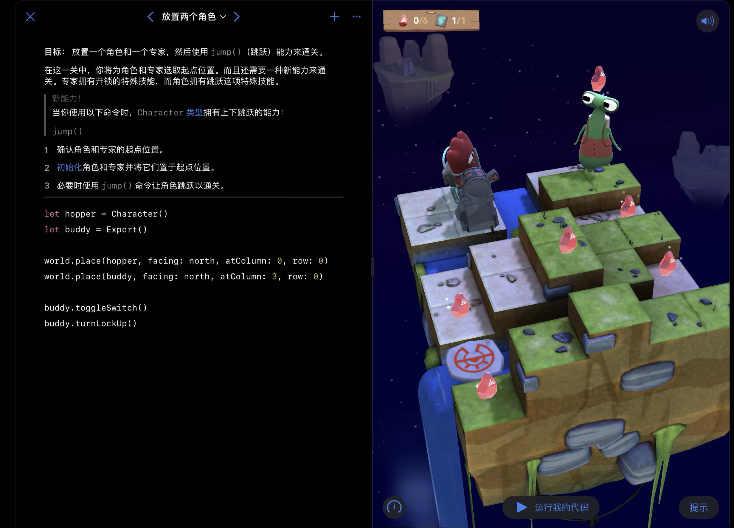 Vita 教的并不是非常枯燥的编程,不是我们想象的漆黑的界面下,绿色荧光英文字母滚动的场景。恰恰相反,与其说是教授编程,不如说是一场「美妙的游戏」之旅。 Vita 教课的软件叫做 Swift Playgrounds,这是一个苹果推出的编程学习程序。但是在说这个软件之前,我们需要先了解什么是 Swift。