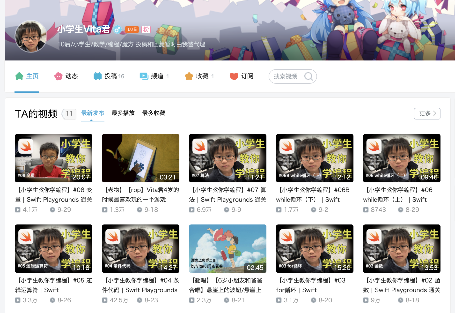 于是花卷爸爸开始趁势鼓励小 Vita 录制课程,教大家使用 Swift Playgrounds 进行编程。了解到花卷爸爸的个性以后,我们知道他这样做的目的显然并不是为了「红」。而是花卷爸爸清楚地知道,讲课可以让孩子重新对知识进行梳理,还能让很多以前没有搞懂,或者是似懂非懂的知识「融会贯通」。 但大家的关注和点赞对小 Vita 来说的确一种激励。这是一种成就感,而这种成就感就像花卷爸爸第一次编写的软件获得《大众软件》的推荐一样,会鼓励着小 Vita 继续对编程世界进行探索。