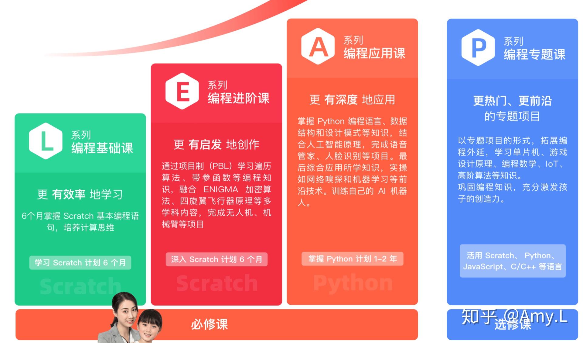 从Scratch到Python再到C/C++、JavaScript等语言,国内现在已经有少儿编程机构有这样成熟的课程体系了,比如西瓜创客。