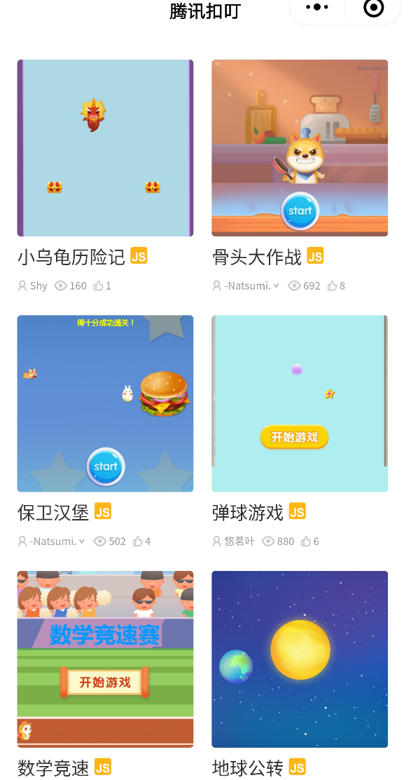 后来他还偷偷告诉小编,玩这个(腾讯扣叮)比玩游戏还过瘾。而他刚开始接触到这个程序,只是因为在微信上看到有别的小朋友在玩自己做的游戏。他说的就是微信公众号“腾讯扣叮”里面的初学者入门教程,只要进入公众号、再点进小程序,就能用开心消消乐或者QQ飞车里面的游戏素材制作属于自己的小游戏。对于我弟这个年龄段的小朋友来说——这实在太好用来装逼了!