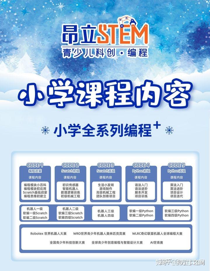 以昂立STEM青少儿编程举例,小学阶段主要学习的课程如下: