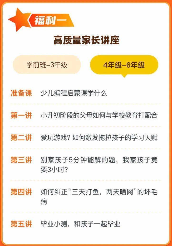 2、免费增加5节家长智慧讲座,专门针对家长教育孩子时遇到的各种难题。