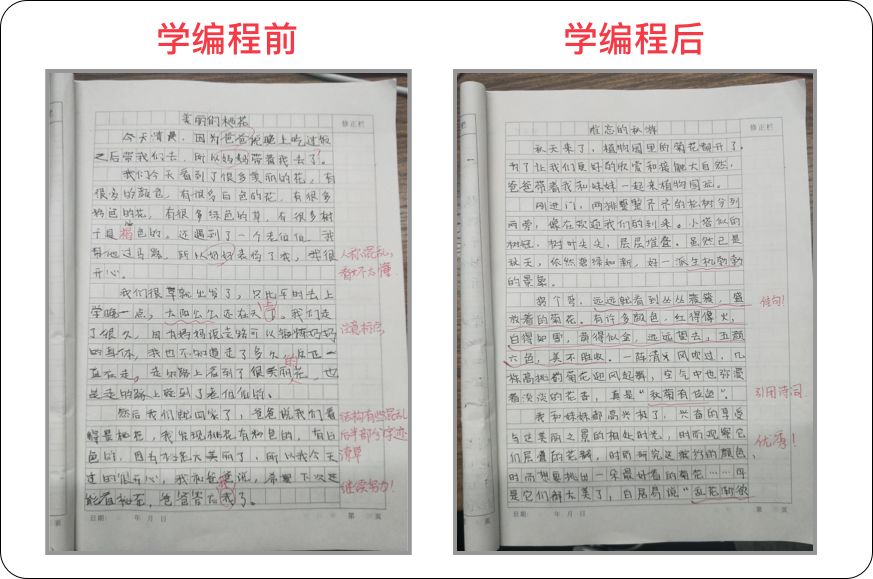 没想到,学编程不到两个月的时间,希希的作文水平竟然得到了肉眼可见的提升!
