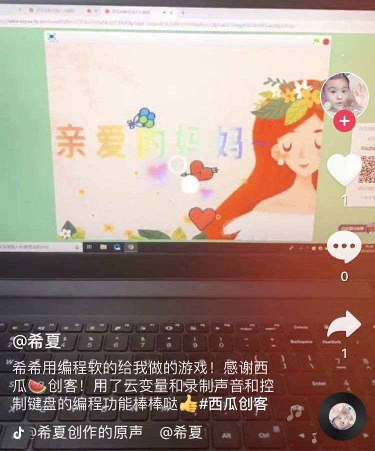希希妈说孩子学编程后像「变了一个人一样」,她在朋友圈分享希希在母亲节用编程制作的贺卡,很多「点赞之交」的朋友甚至都跑来问这是在哪儿学的这么厉害。