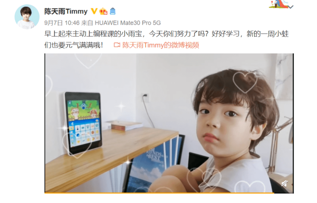 无独有偶,在《三十而已》里扮演“全剧唯一好男人”的许子言,虽然才5岁,但每天早上都会主动上编程课。
