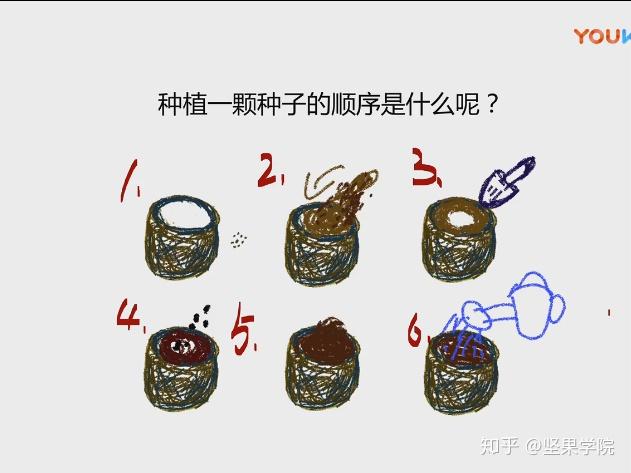 1. 知识讲解,通过学习播种一颗种子,把生活中的顺序逐步过渡到电脑顺序编程