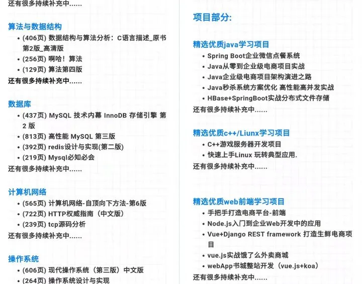 猪学长之前一直都有认真整理很多技术书籍,还有一些优质项目课程,互联网校招面试题目,其中有很多某课上的优质课程是我曾经花了很多钱购买的,现如今猪学长也已经毕业啦,都分享出来直接分享给有需要的同学们。