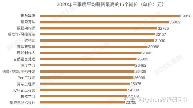 3) 2020年三季度平均薪资最高的15个岗位