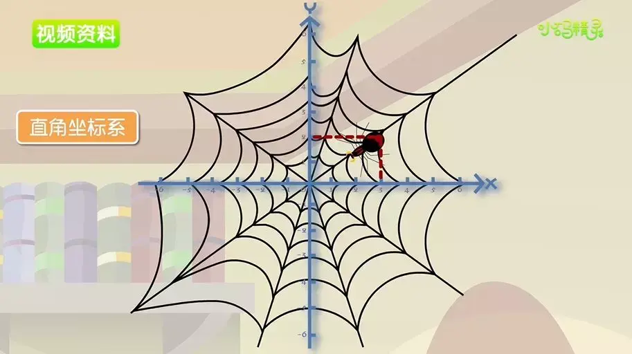 突然,他看见屋顶上的一只蜘蛛,拉着丝垂了下来,一会儿功夫,蜘蛛又顺着丝爬了上去,在上边左右拉丝,蜘蛛的“表演”使笛卡尔的思路豁然开朗。他想,可以把蜘蛛看做一个点,它在屋子里可以上、下、左、右运动,能不能把蜘蛛的每个位置用一组数组确定下来呢?他又想,屋子里相邻的两面墙与地面交出了三条线,如果把地面上的墙角作为起点,把交出来的三条线作为三根数轴,那么空间中任意一点的位置就可以用这三根数轴上有顺序的三个数来表示。反过来,任意给一组三个有顺序的数也可以在空间中找出一点与之对应。