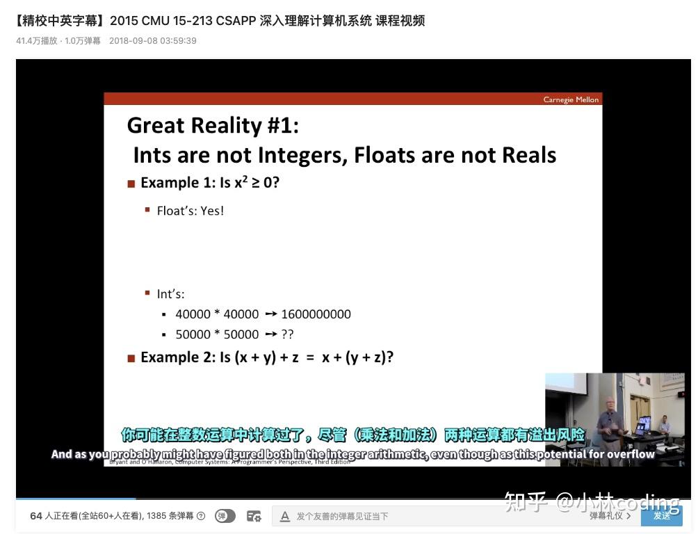 CSAPP 的视频课程是国外老师录制的,但是在 b 站已经有好人帮我们做了中文字幕,看了这视频,相当于在国外上了一门计算机课的感觉。