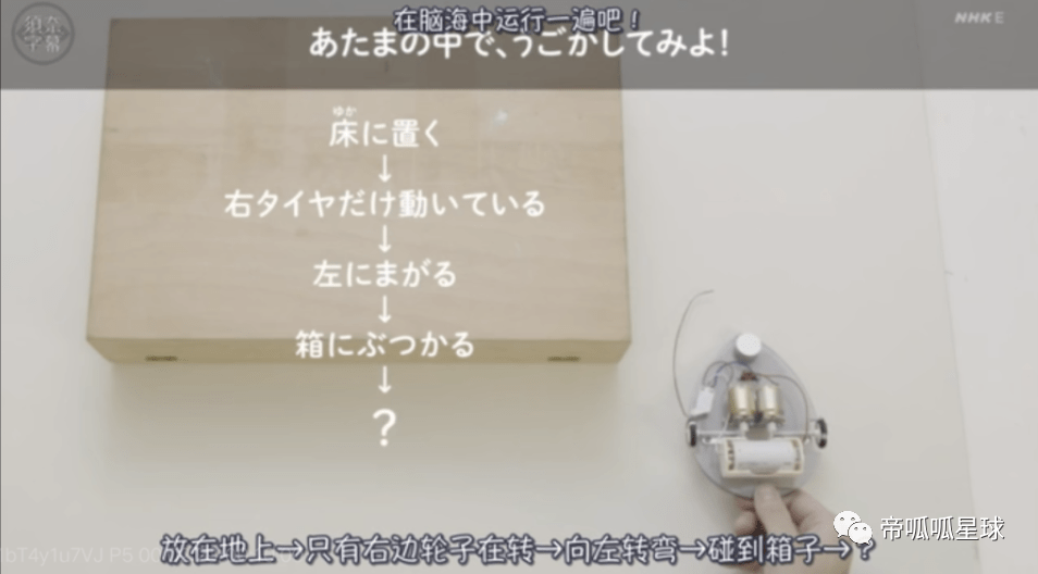 放在地上——只有右边轮子在转——向左转弯——碰到箱子——然后呢?