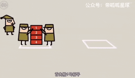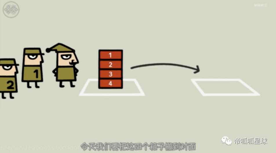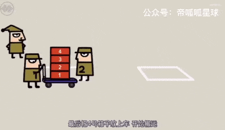 有按顺序摆放的1、2、3、4号箱子,要搬到对面,怎么搬呢?