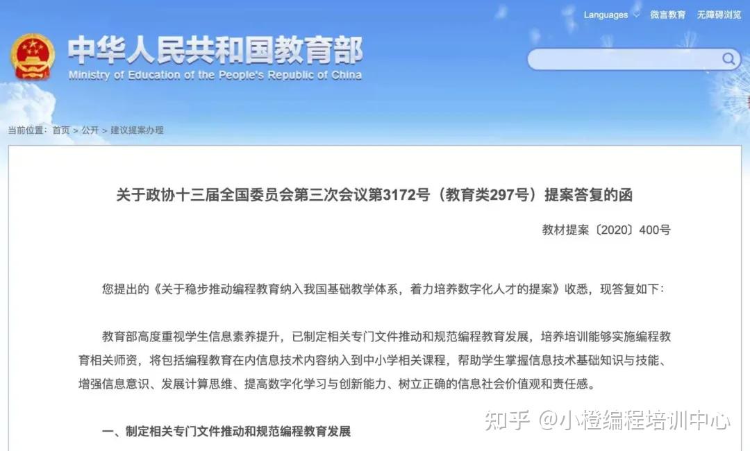 2014年,英国正式把编程列入必修课程,儿童从5岁开始学习。在2020年末,教育部声称将推动和规范编程教育发展。