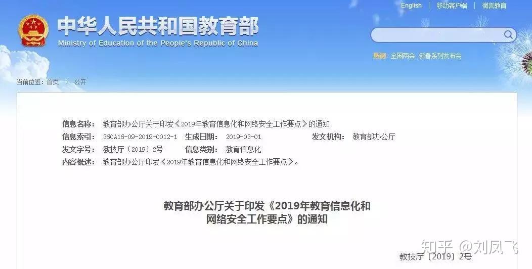 (5) 2019年3月13日,教育部办公厅关于印发《2019年教育信息化和网络安全工作要点》的通知。