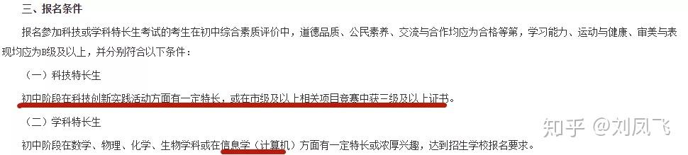 科技特招生要求在初中阶段有一定关于科技创新实践活动的特长,或在市级及以上的相关竞赛中获得三级及以上证书。
