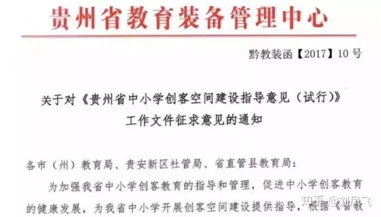 (9)2017年8月贵州省起草了《贵州省中小学创客空间建设指导意见(试行)》,鼓励通过开展多项目、系列化的创客竞赛活动,引导师生广泛参与,以竞赛带培训,以竞赛促水平。