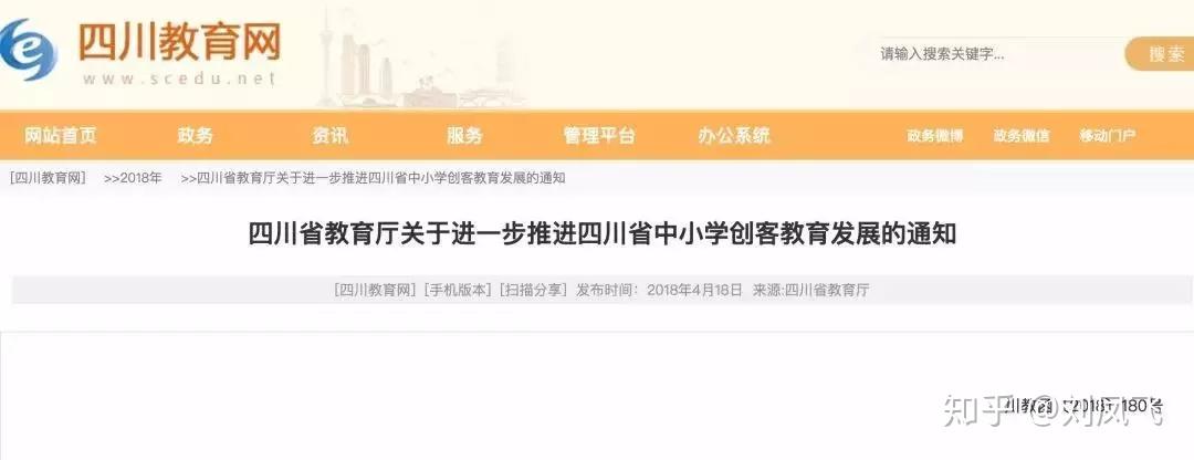 (8)2018年4月18日,四川省教育厅就当地创客教育的发展建设,发布《四川省教育厅关于进一步推进四川省中小学创客教育发展的通知》。