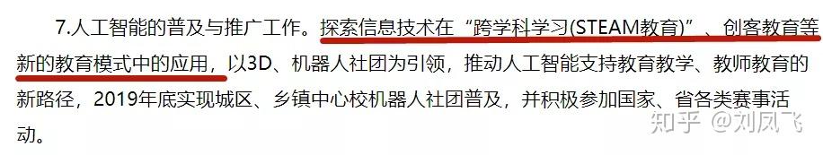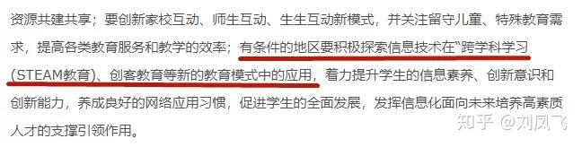 提出有条件的地区要积极探索信息技术在跨学科学习(STEAM教育)、创客教育等新的教育模式中的应用。